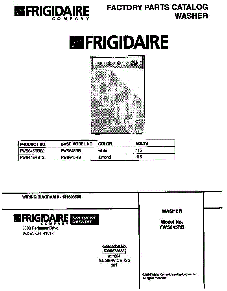 Parts for Frigidaire FWS645RBS2: 01 - Cover Parts