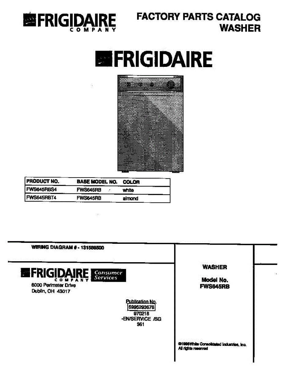 Parts for Frigidaire FWS645RBS4: 01 - Cover Parts