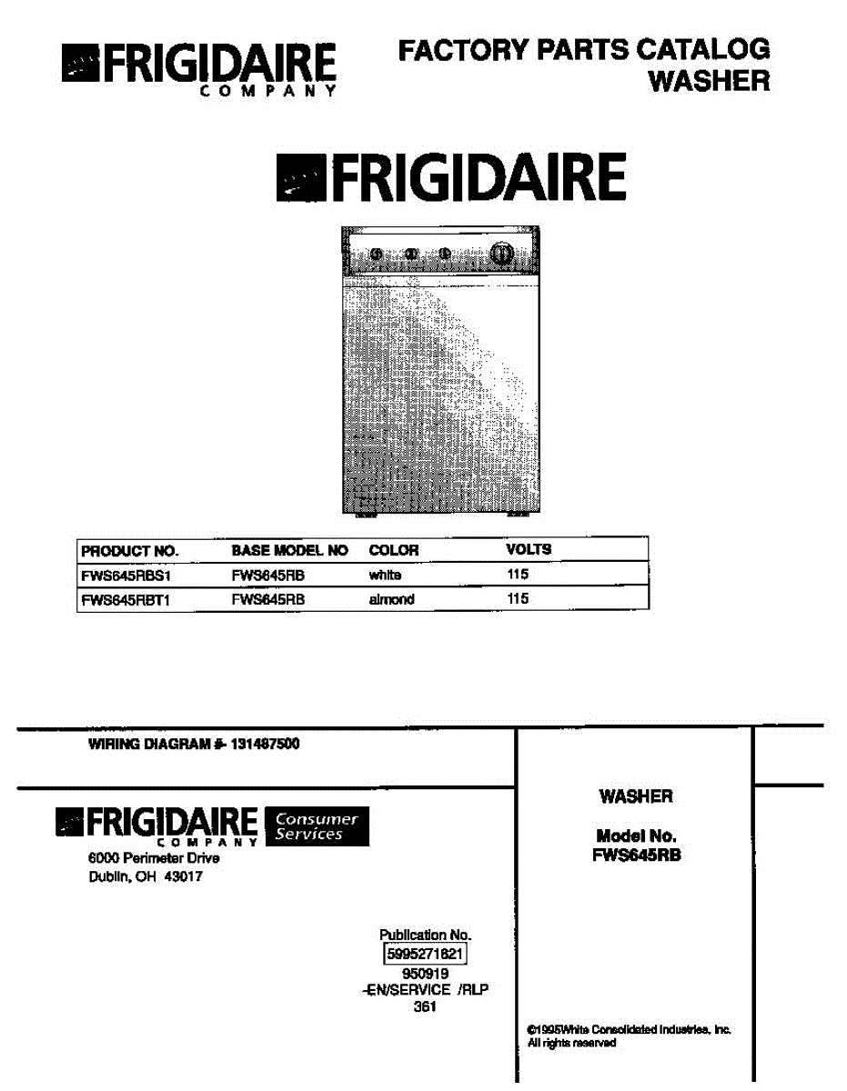Parts for Frigidaire FWS645RBT1: 01 - Cover Parts