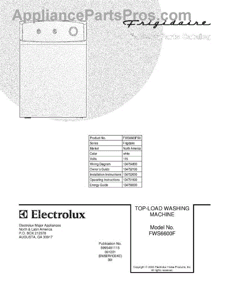 Parts for Frigidaire FWS6600FS0: 01 - Cover Parts
