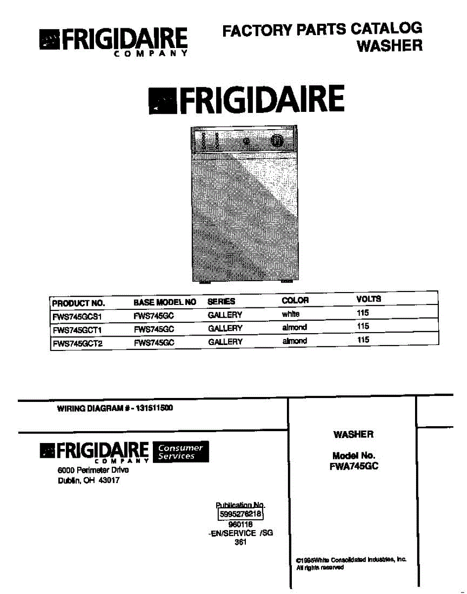 Parts for Frigidaire FWS745GCS1: 01 - Cover Parts