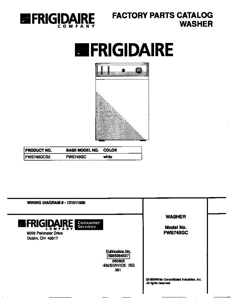 Parts for Frigidaire FWS745GCS2: 01 - Cover Parts