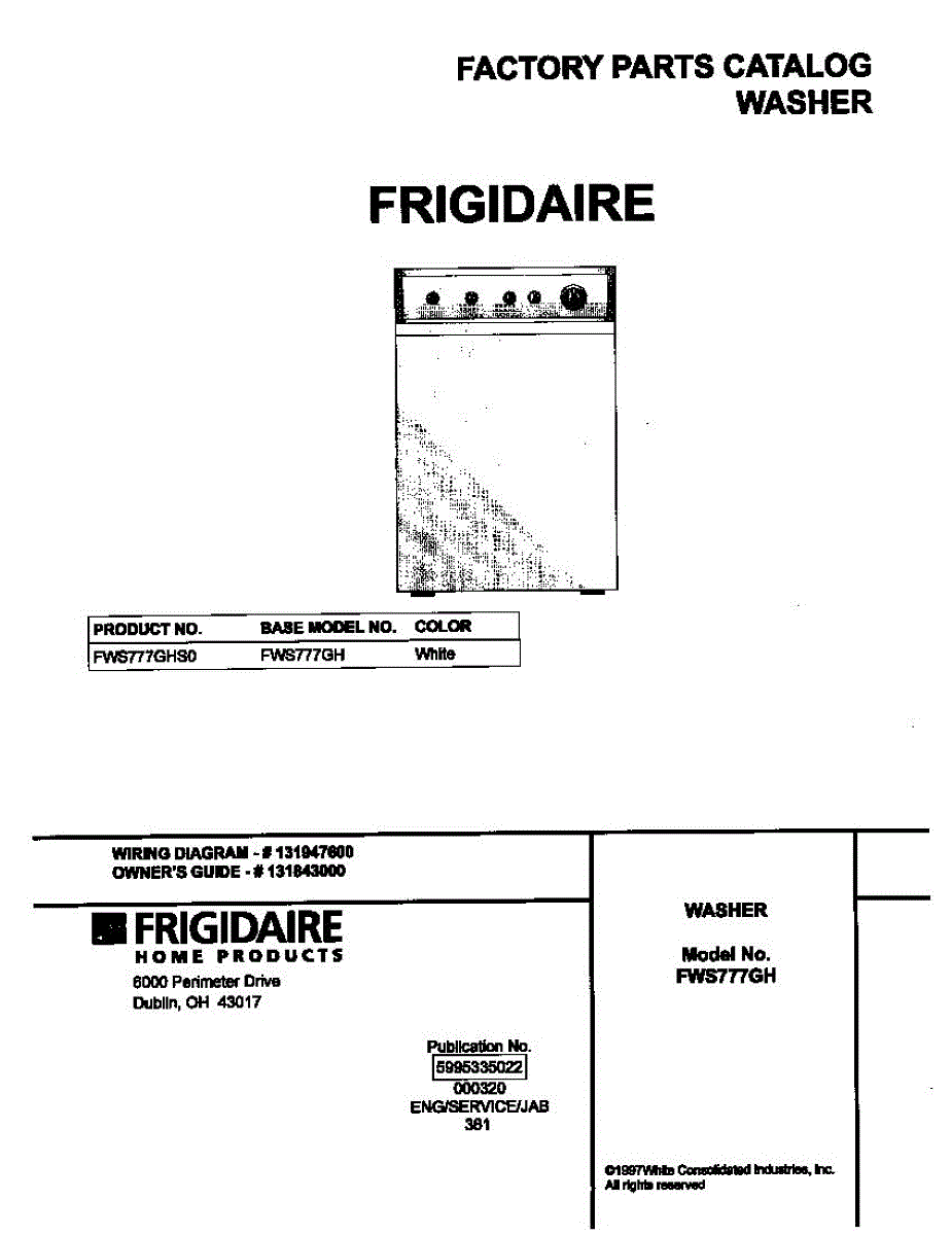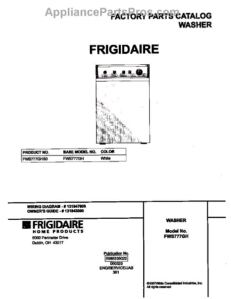 Parts for Frigidaire FWS777GHS0: 01 - Cover Parts