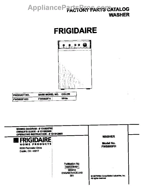 Parts for Frigidaire FWS800FHS0: 01 - Cover Parts