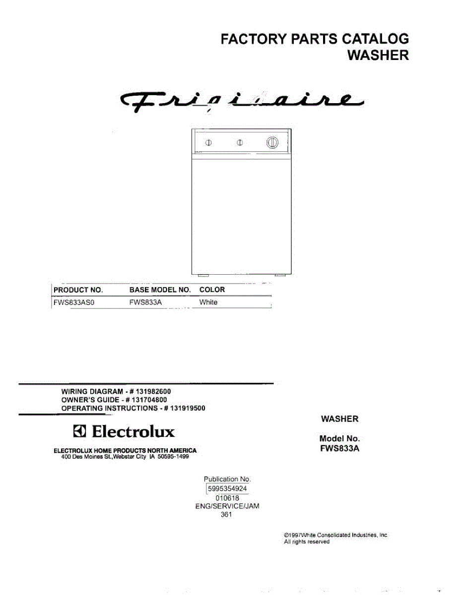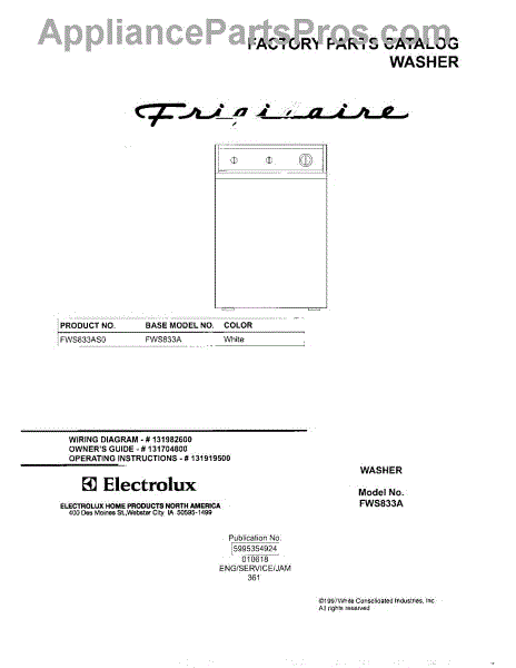 Parts for Frigidaire FWS833AS0: 01 - Cover Parts