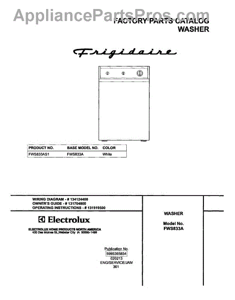 Parts for Frigidaire FWS833AS1: 01 - Cover Parts
