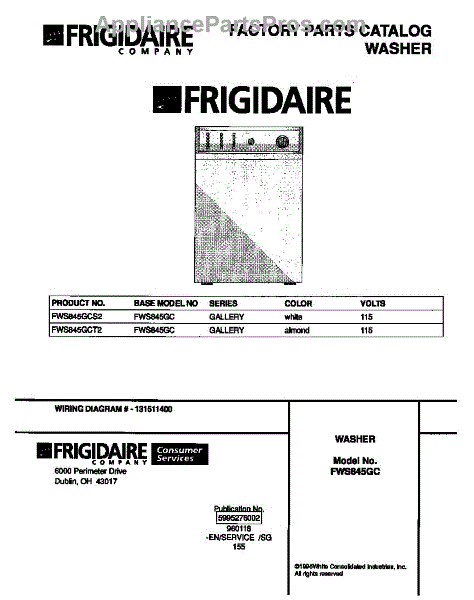 Parts for Frigidaire FWS845GCT2: 01 - Cover Parts