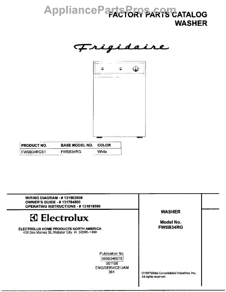 Parts for Frigidaire FWSB34RGS1: 01 - Cover Parts