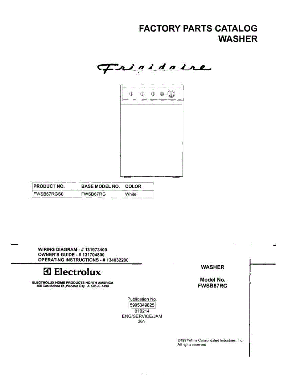 Parts for Frigidaire FWSB67RGS0: 01 - Cover Parts