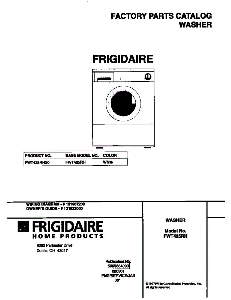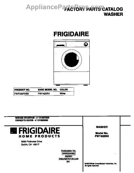 Parts for Frigidaire FWT425RHS0: 01 - Cover Parts