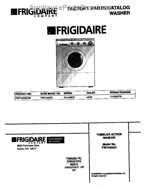 Parts for Frigidaire FWT445GCS0: 01 - Cover Parts
