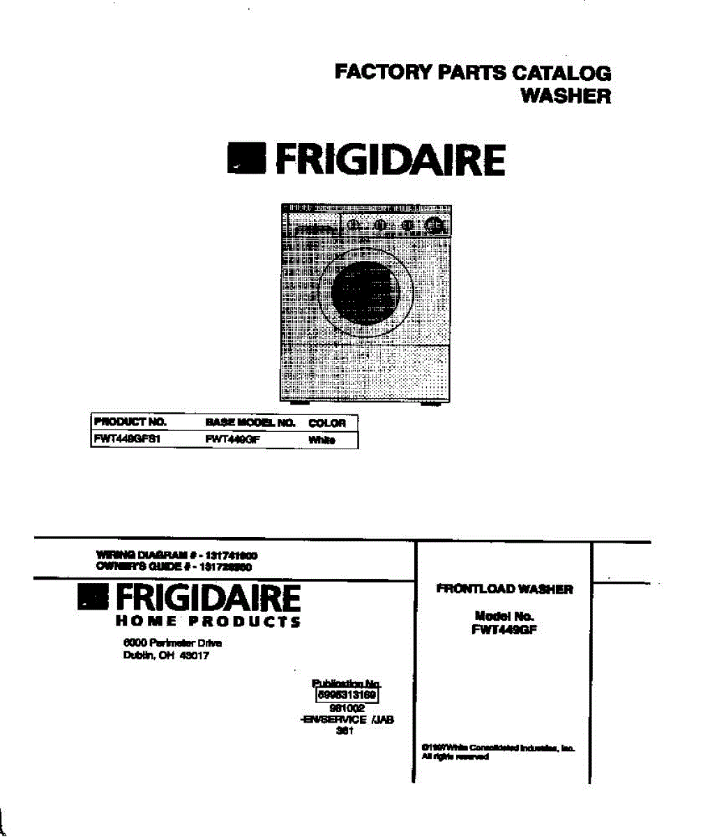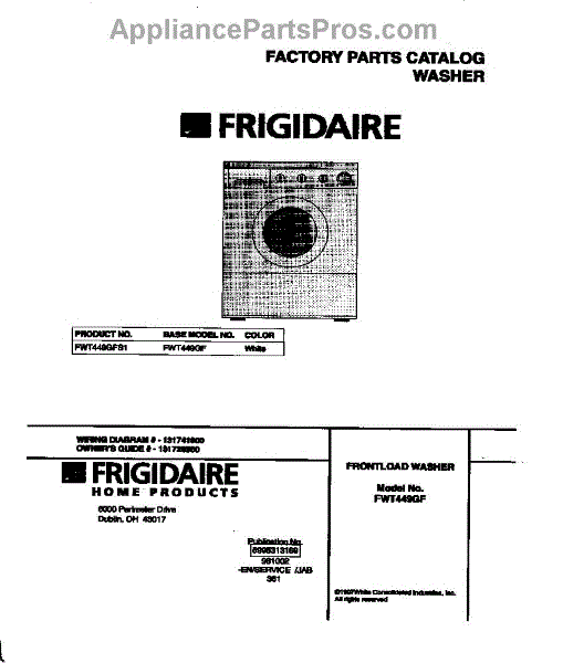 Parts for Frigidaire FWT449GFS1: 01 - Cover Parts