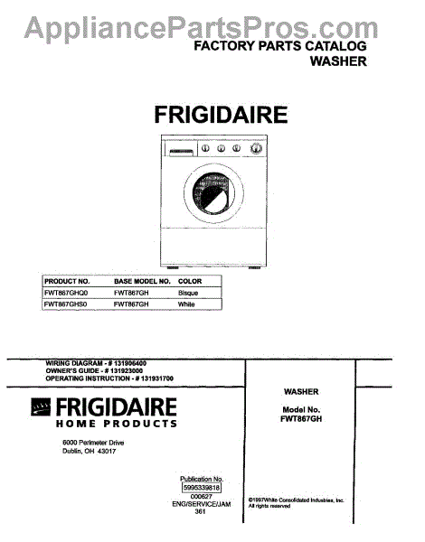 Parts for Frigidaire FWT867GHQ0: 01 - Cover Parts