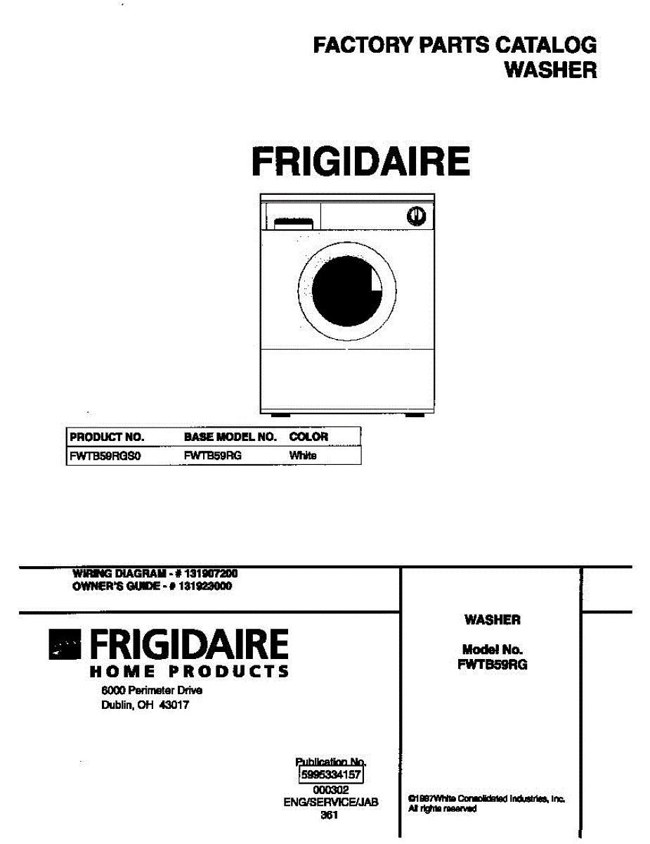 Parts for Frigidaire FWTB59RGS0: 01 - Cover Parts