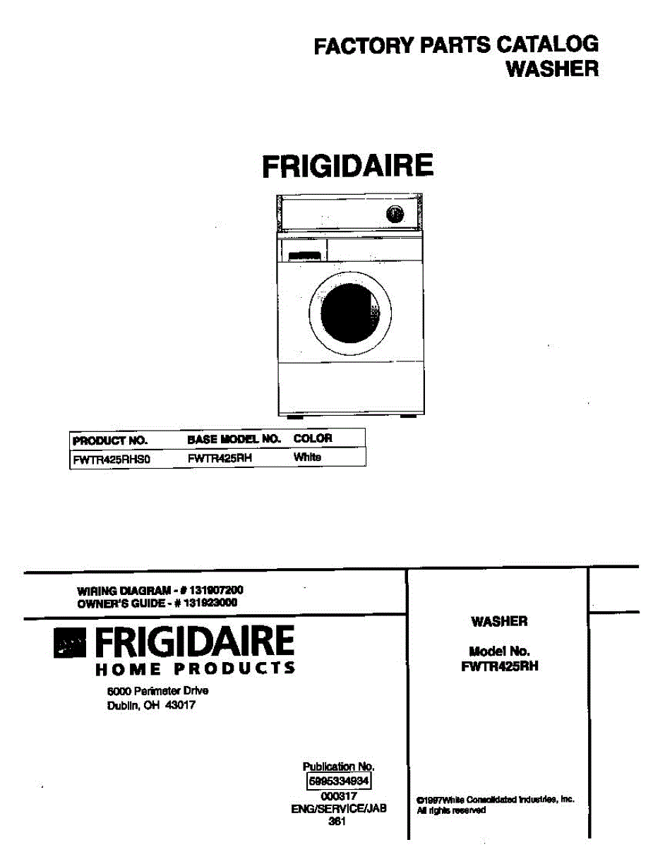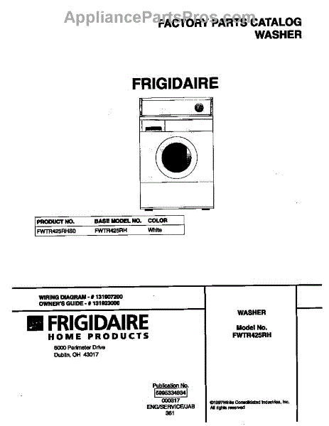 Parts for Frigidaire FWTR425RHS0: 01 - Cover Parts