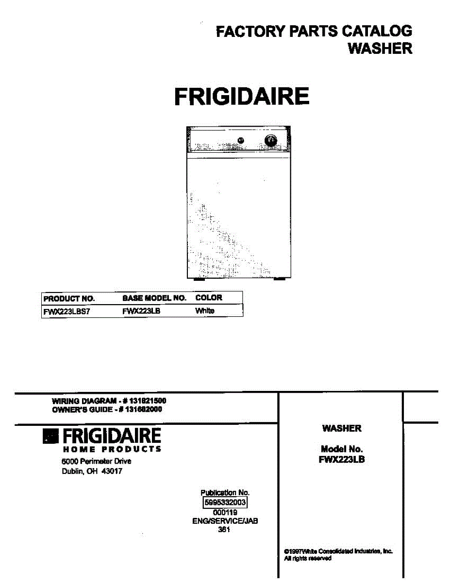 Parts for Frigidaire FWX223LBS7: 01 - Cover Parts