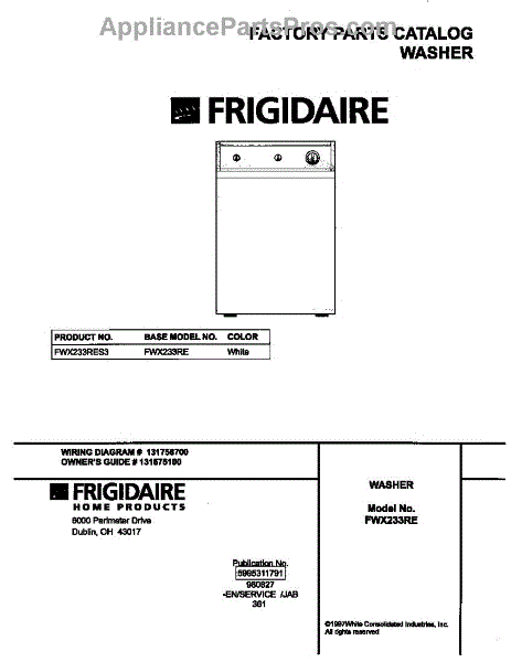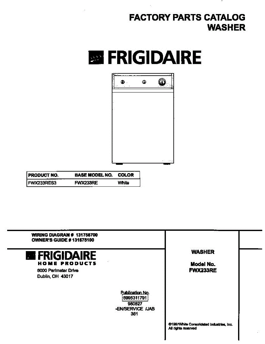 Parts for Frigidaire FWX233RES3: 01 - Cover Parts
