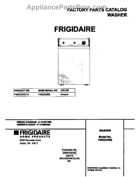 Parts for Frigidaire FWX233RET0: 01 - Cover Parts