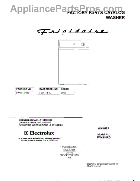 Parts for Frigidaire FWX414RGS1: 01 - Cover Parts