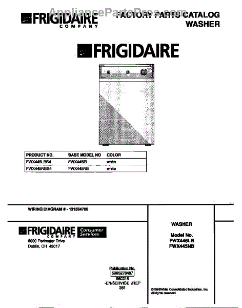Parts for Frigidaire FWX445LBS4: 01 - Cover Parts