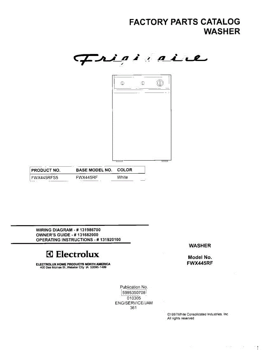 Parts for Frigidaire FWX445RFS5: 01 - Cover Parts