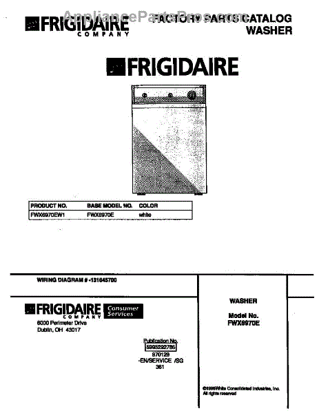Parts for Frigidaire FWX6970EW1: 01 - Cover Parts