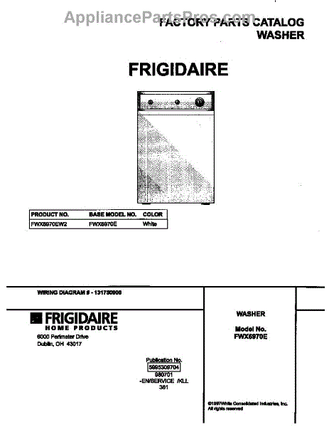 Parts for Frigidaire FWX6970EW2: 01 - Cover Parts