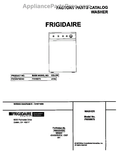 Parts for Frigidaire FWX6975EW2: 01 - Cover Parts