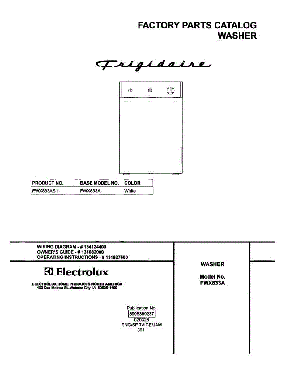 Parts for Frigidaire FWX833AS1: 01 - Cover Parts