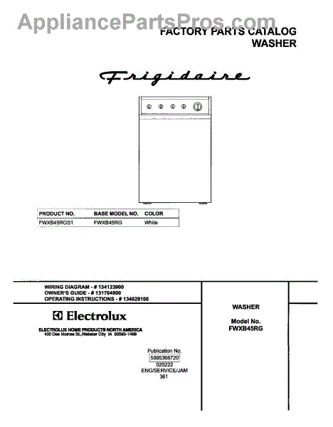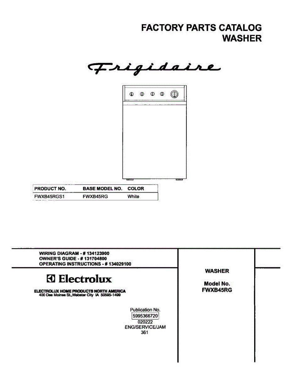 Parts for Frigidaire FWXB45RGS1: 01 - Cover Parts