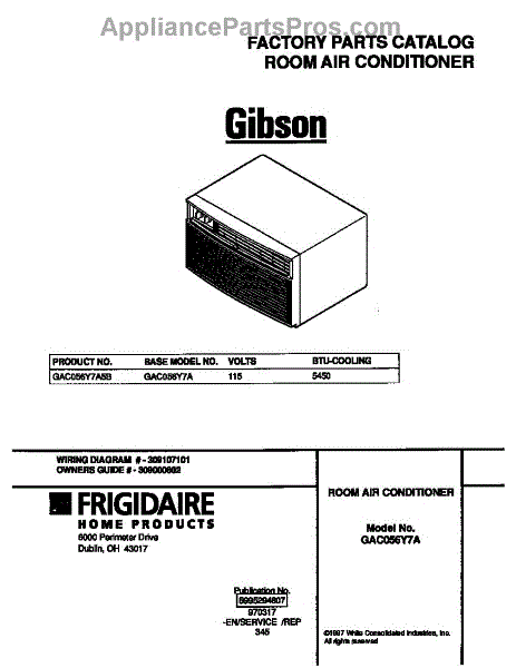 Parts for Frigidaire GAC056Y7A5B: 01 - Cover Parts