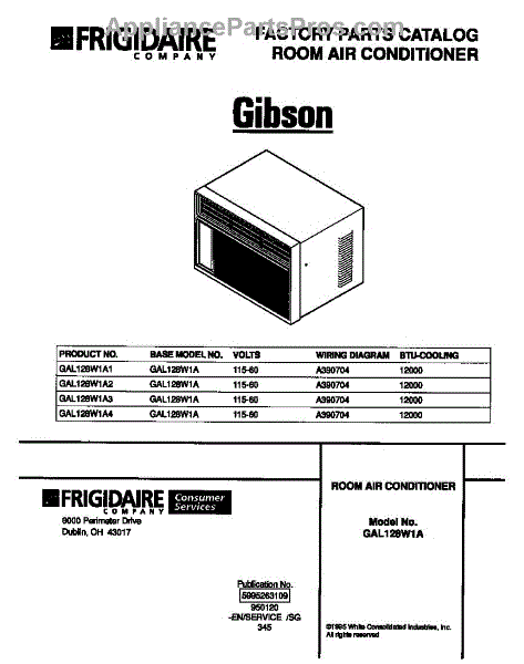 Parts for Frigidaire GAL128W1A1: 01 - Cover Parts