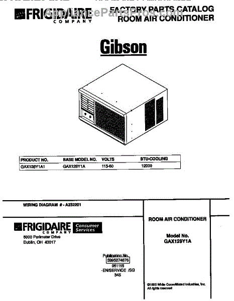 Parts for Frigidaire GAX128Y1A1: 01 - Cover Parts
