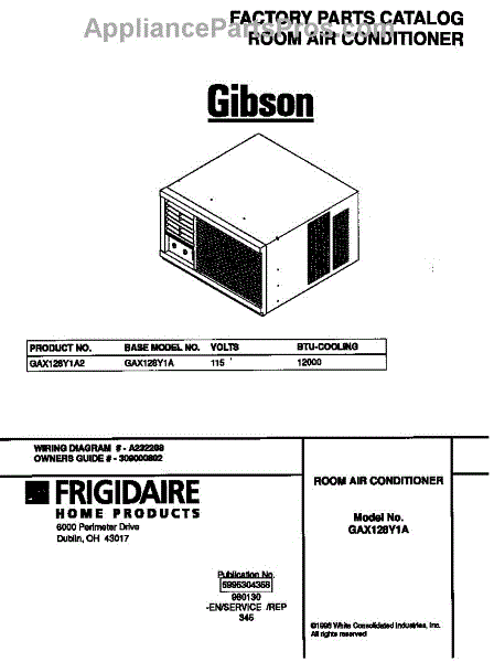 Parts for Frigidaire GAX128Y1A2: 01 - Cover Parts