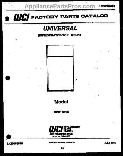 Parts for Frigidaire GCD12HJ0: 01 - Cover Parts