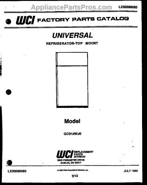 Parts for Frigidaire GCD14WA0: 01 - Cover Parts
