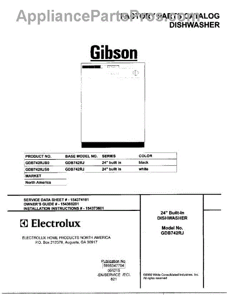 Compatible models include Electrolux, Gibson, and select Kenmore units.