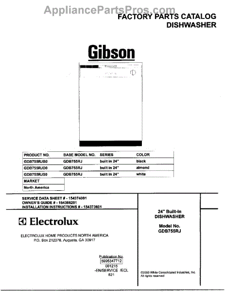 Compatible models include Electrolux, Gibson, and select Kenmore units.