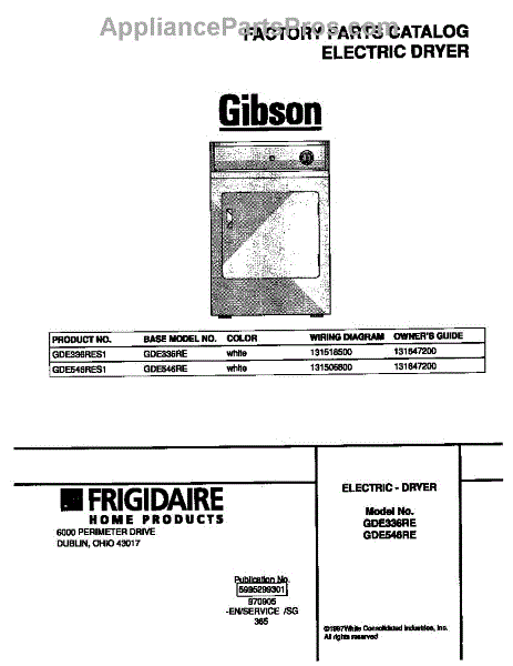 Parts for Frigidaire GDE336RES1: 01 - Cover Parts