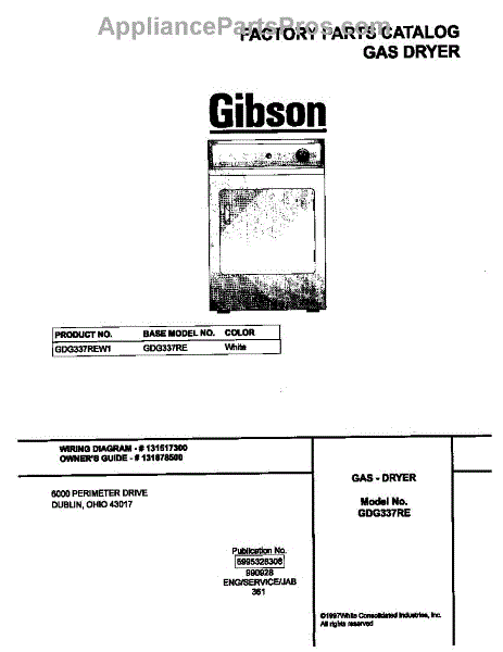 Parts for Frigidaire GDG337REW1: 01 - Cover Parts