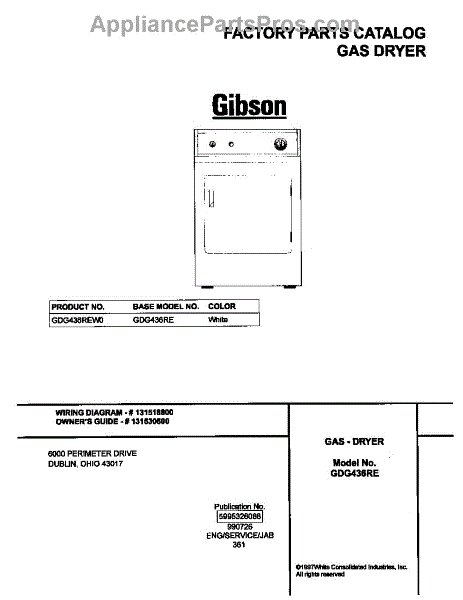 Parts for Frigidaire GDG436REW0: 01 - Cover Parts