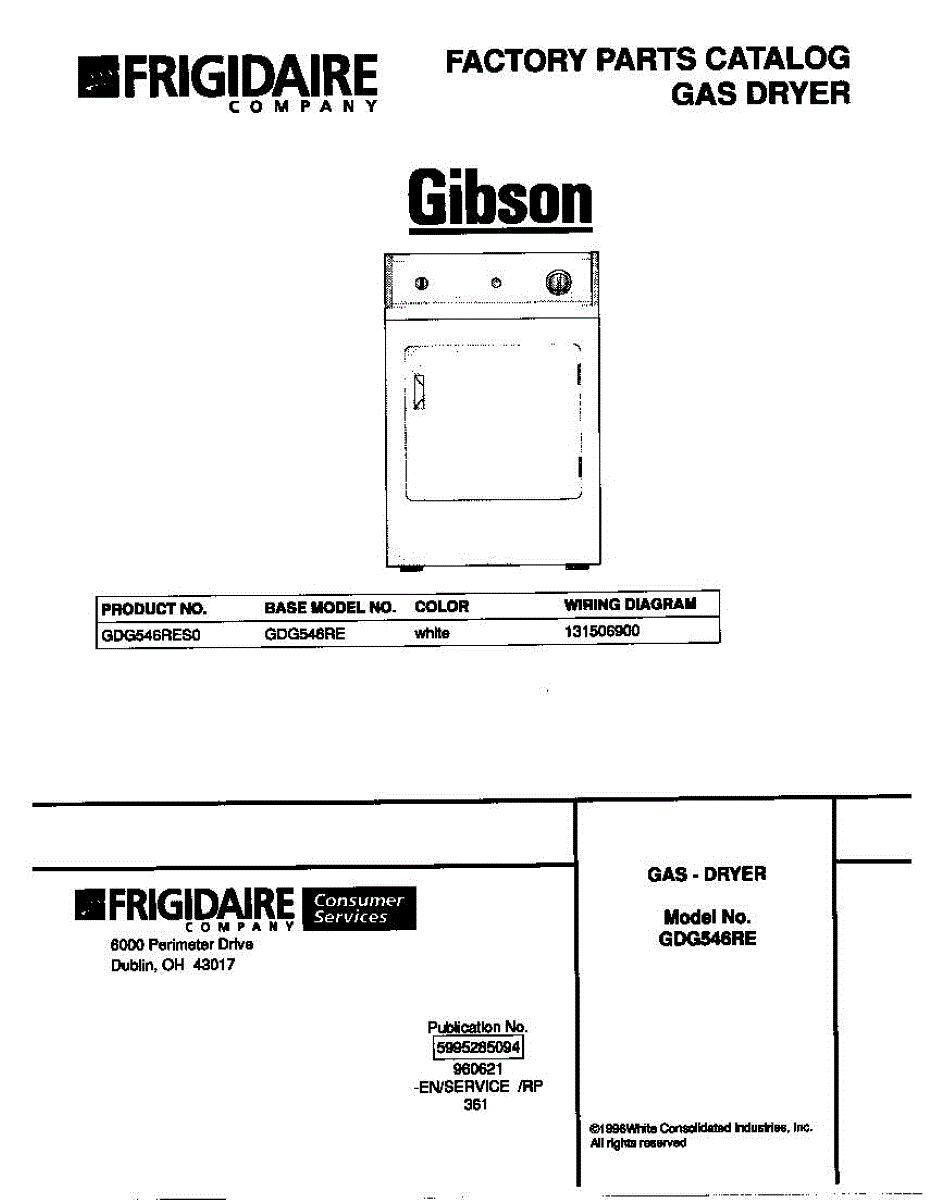 Parts for Frigidaire GDG546RES0: 01 - Cover Parts