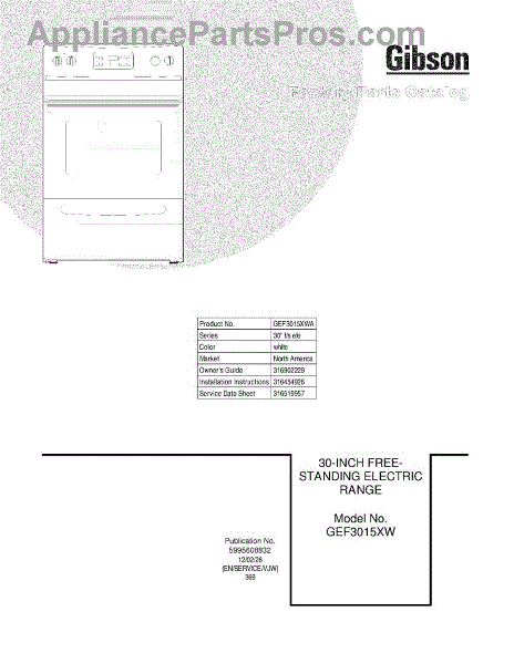 Parts for Frigidaire GEF3015XWA: 01 - Cover Parts
