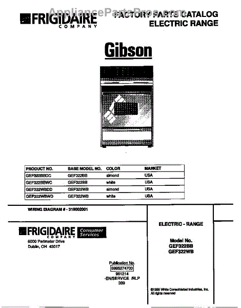 Parts for Frigidaire GEF322WBWD: 01 - Cover Parts