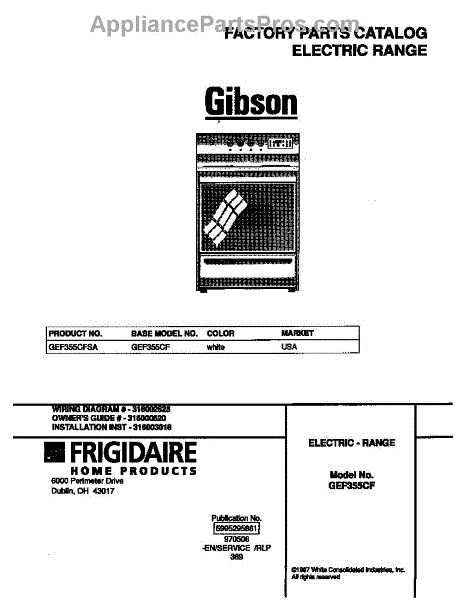 Parts for Frigidaire GEF355CFSA: 01 - Cover Parts