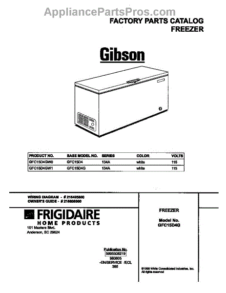 Parts for Frigidaire GFC15D4GW0: 01 - Cover Parts