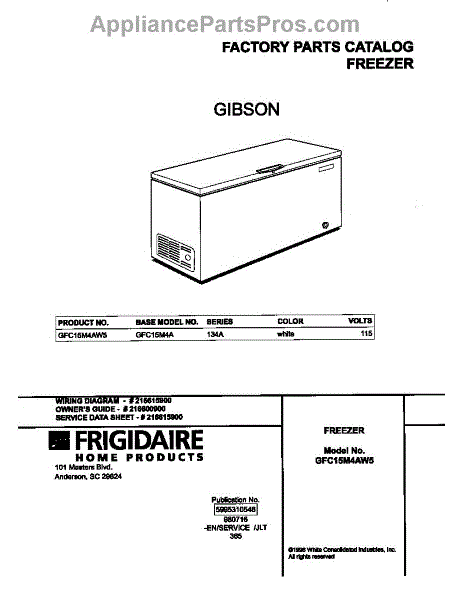 Parts for Frigidaire GFC15M4AW5: 01 - Cover Parts
