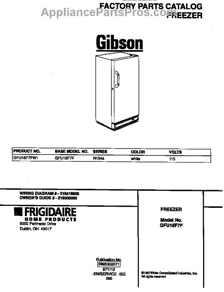 Parts for Frigidaire GFU16F7FW1: 01 - Cover Parts