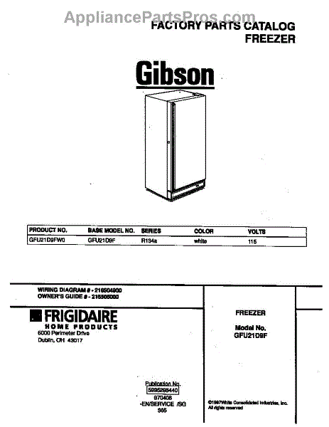 Parts for Frigidaire GFU21D9FW0: 01 - Cover Parts