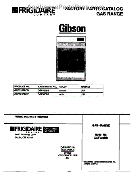 Parts for Frigidaire GGF325BBWD: 01 - Cover Parts
